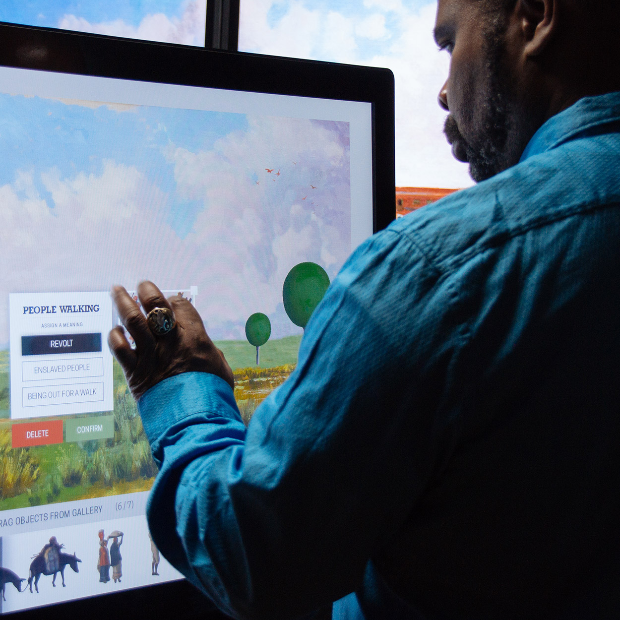 Landscapes Carry Meaning Published March 16, 2016 at 1250 × 1250 in GLAMi Nomination User assigns a meaning to the group of figures he has added to his landscape. A user engages with the multitouch wall interactive, Landscapes Carry Meaning. He assigns a meaning to the group of figures walking that he has added to his landscape.