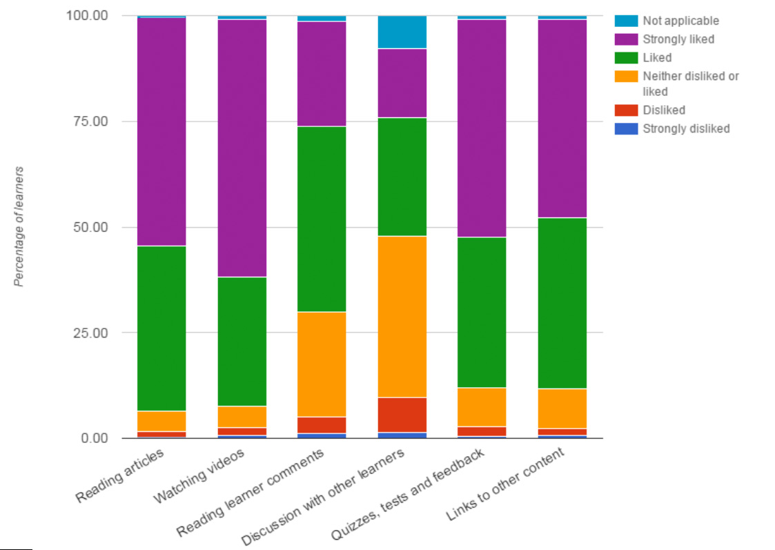 parry.fig3 Published February 1, 2016 at 1123 × 797 in Submit Paper Figure 3: Learner ratings of learning activities, across all four MOOCs (n=c.80,000).